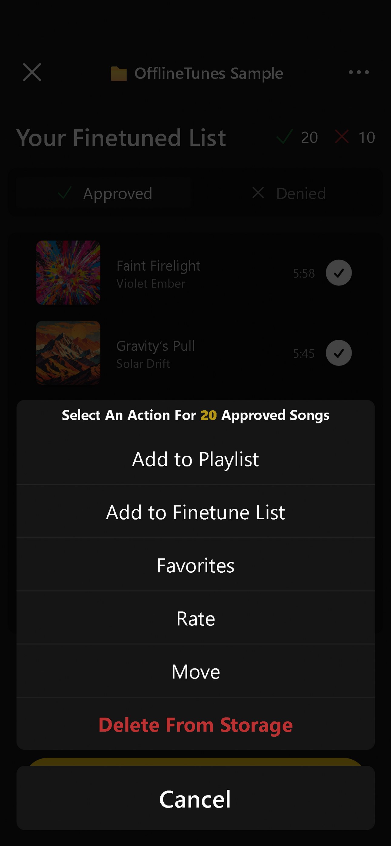 Once you've filtered your list, choose what to do with approved and denied songs: